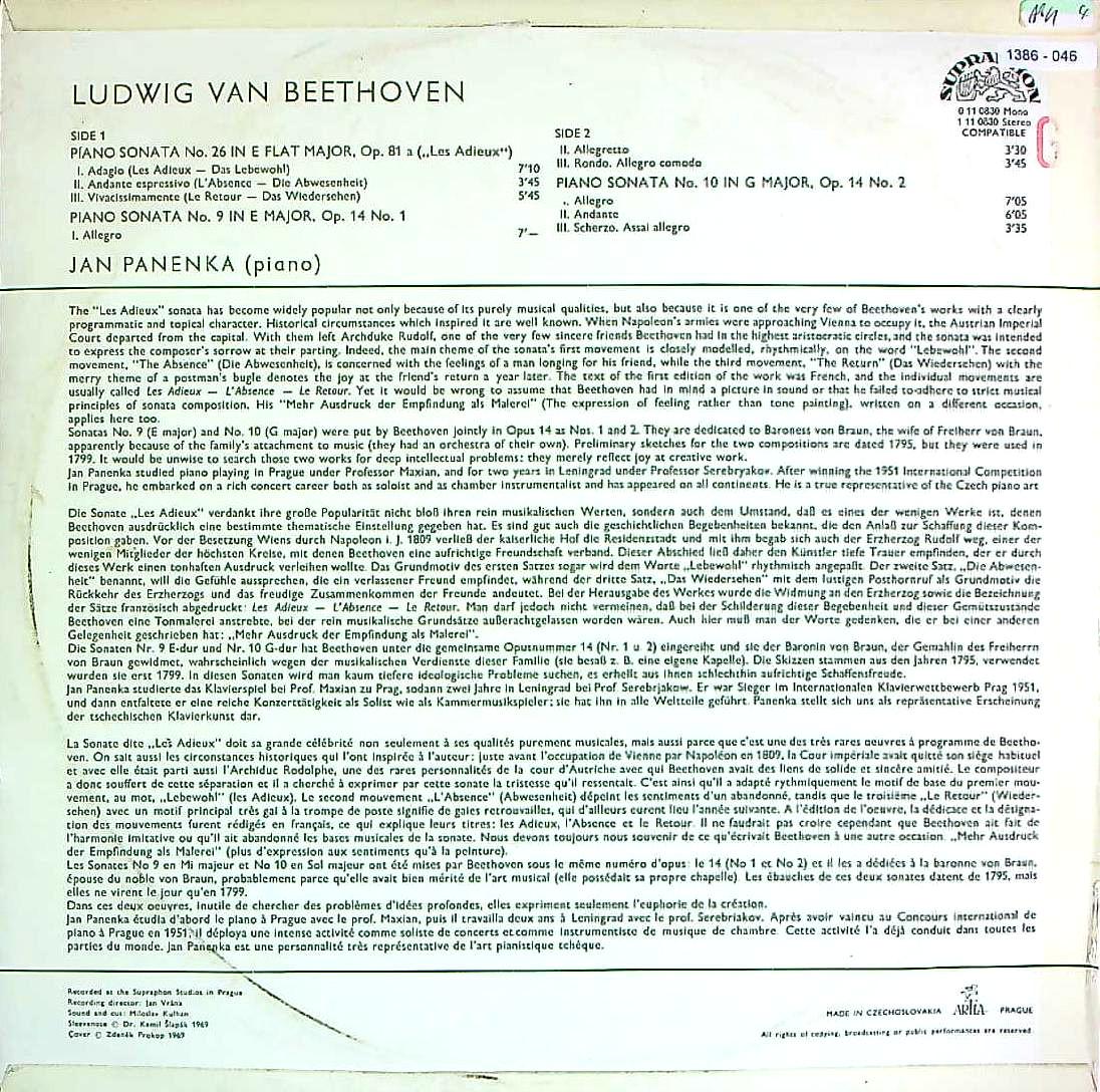 商品コード:1386-046p[SUPRAPHON] J.パネンカ(pf) / ベートーヴェン:Pfソナタ26番Op.81a「告別」, 9番Op.14-1, 10番Op.14-2