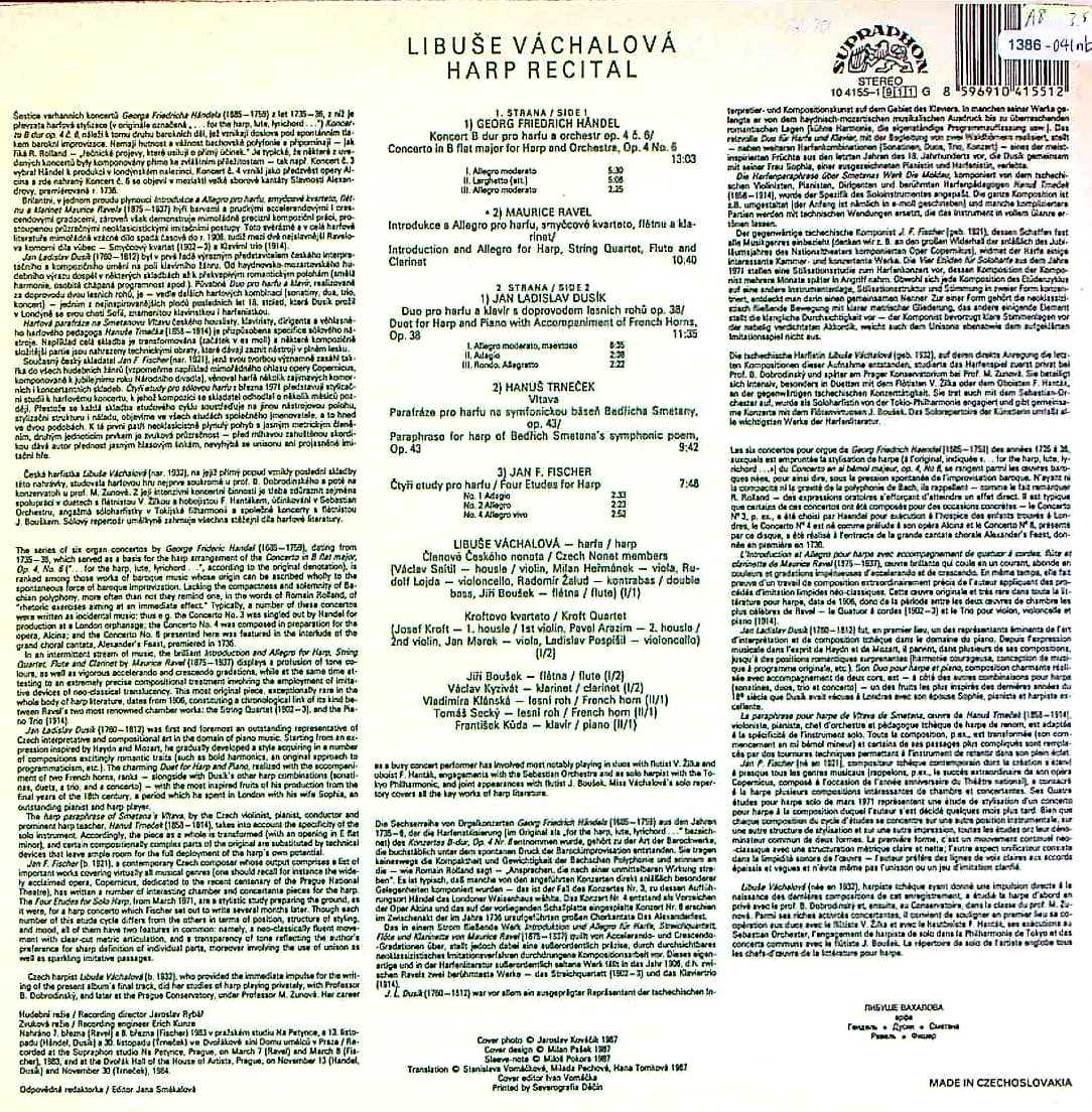 商品コード:1386-041nb[SUPRAPHON] L.ヴァハロヴァー(hp) 他 / Hpリサイタル/ヘンデル, ラヴェル, ドゥシーク, トルニェチェク, フィッシャー