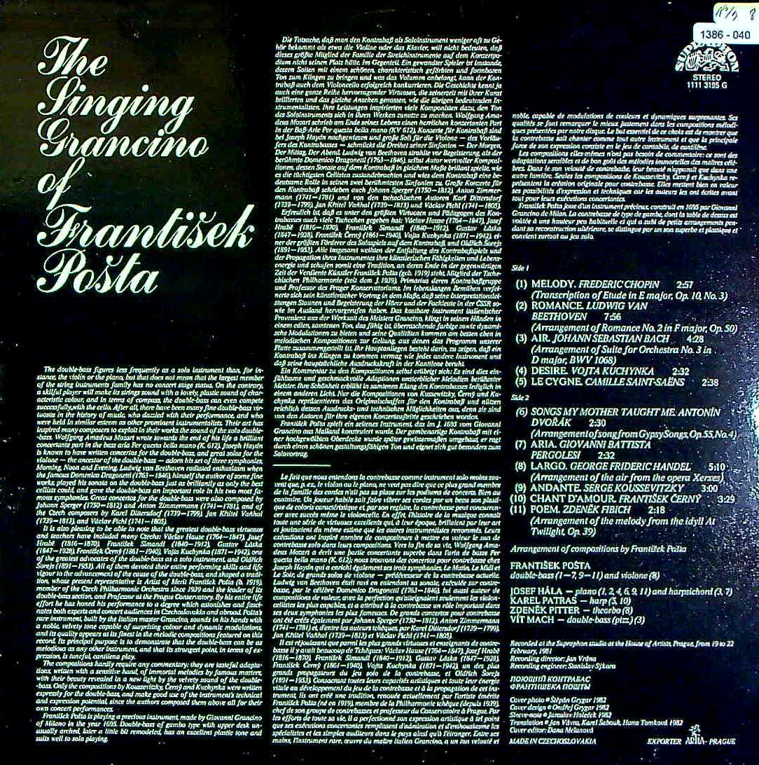 商品コード:1386-040n[SUPRAPHON] F.ポシュタ(cb/ヴィオローネ) 他 / Cb曲集(全11曲)/ショパン, ベートーヴェン, サン・サーンス, ドヴォルザーク, ヘンデル 他