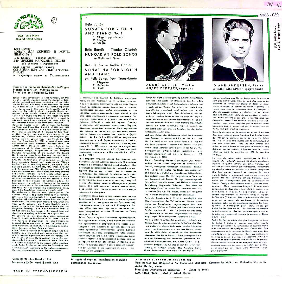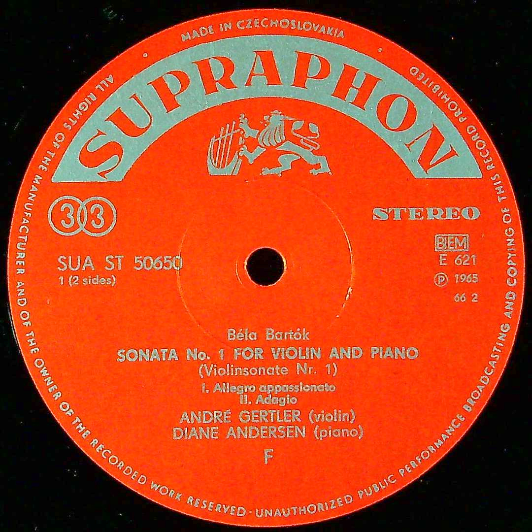 商品コード:1386-039t[SUPRAPHON] A.ジェルトレル(vn)/ バルトーク:Vnソナタ1番Sz.75.ハンガリー民謡集(全9曲), VnとPfのためのソナチネSz.55