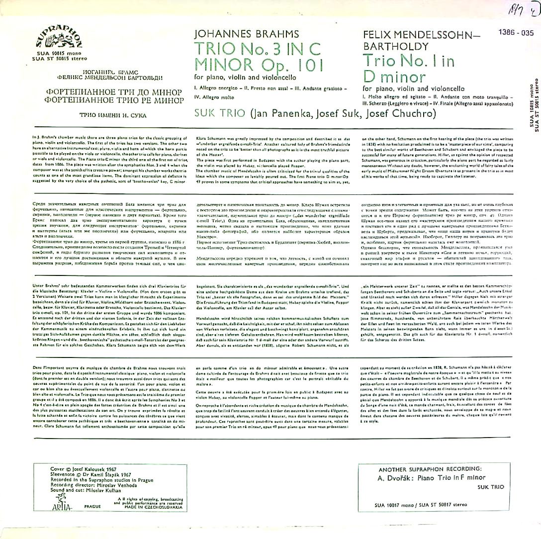 商品コード:1386-035[SUPRAPHON] スーク・トリオ / ブラームス:Pf三重奏曲3番Op.101, メンデルスゾーン:Pf三重奏曲Op.49