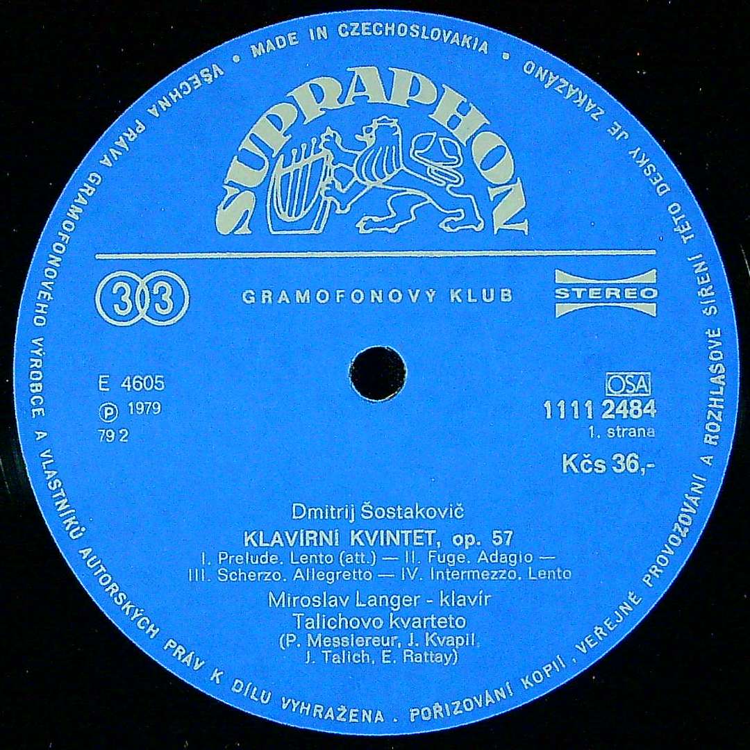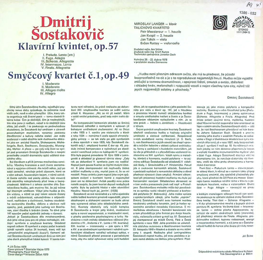 商品コード:1386-032[SUPRAPHON] M.ランゲル(pf) ターリヒQt. / ショスタコーヴィチ:Pf五重奏Op.57, 弦楽四重奏曲1番Op.49
