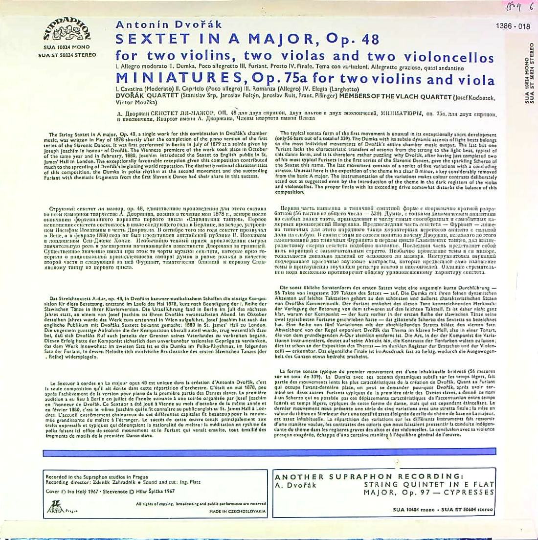 商品コード:1386-018t[SUPRAPHON] ドヴォルザークQt. 他/ ドヴォルザーク:弦楽六重奏曲Op.48, 弦楽三重奏のためのミニアチュールOp.75a