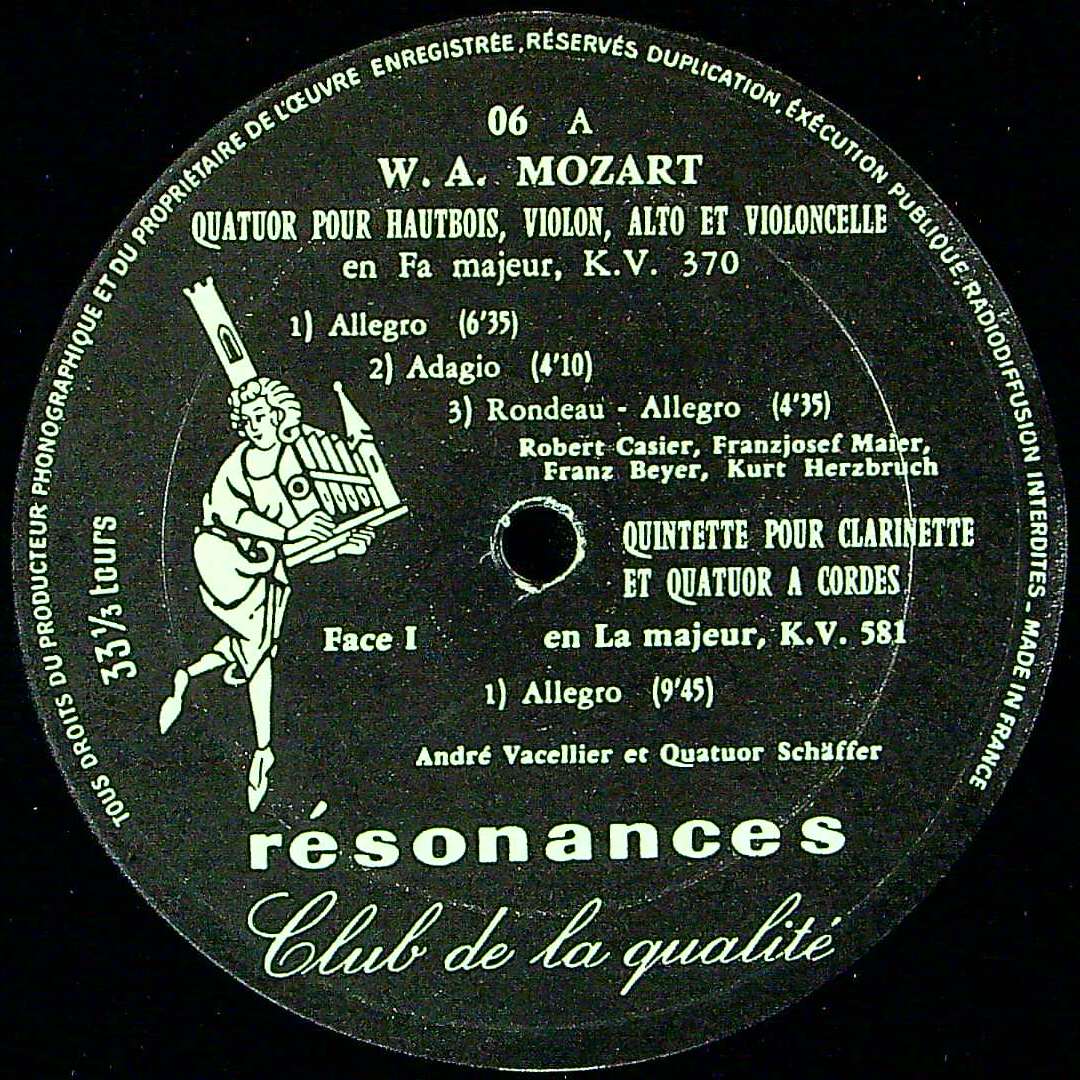 商品コード:1386-017[Résonances] A.ヴァセリエ(cl) R.カシエ(ob) シェッファーQt. / モーツァルト:Ob四重奏曲K.370, Cl五重奏曲K.581
