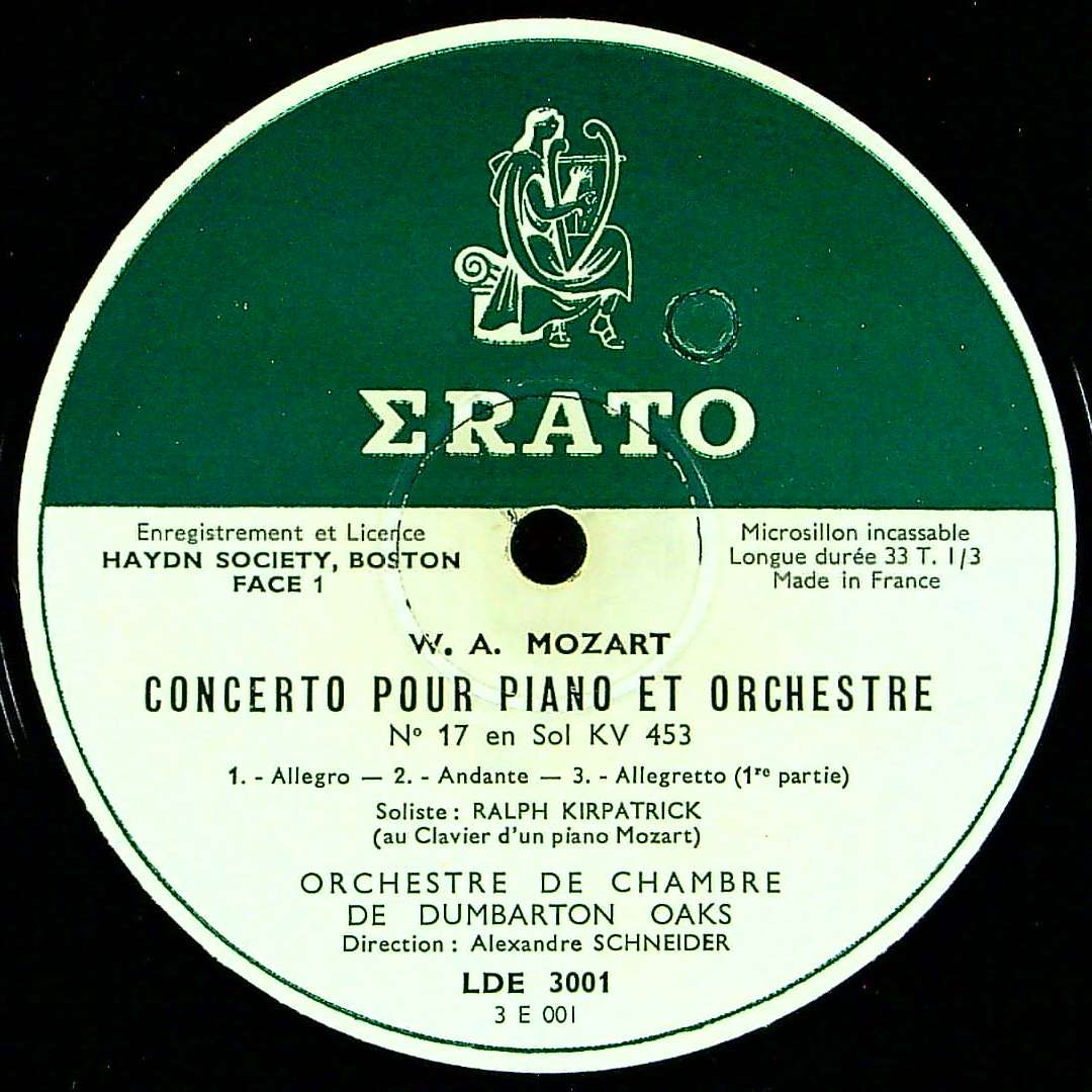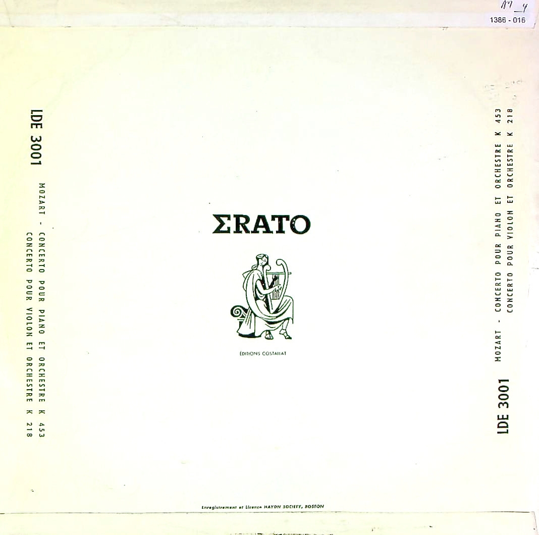 商品コード:1386-016[ERATO] A.シュナイダー(vn)/ R.カークパトリック(hf)/ モーツァルト:Pf協奏曲17番K.453, Vn協奏曲4番K.218
