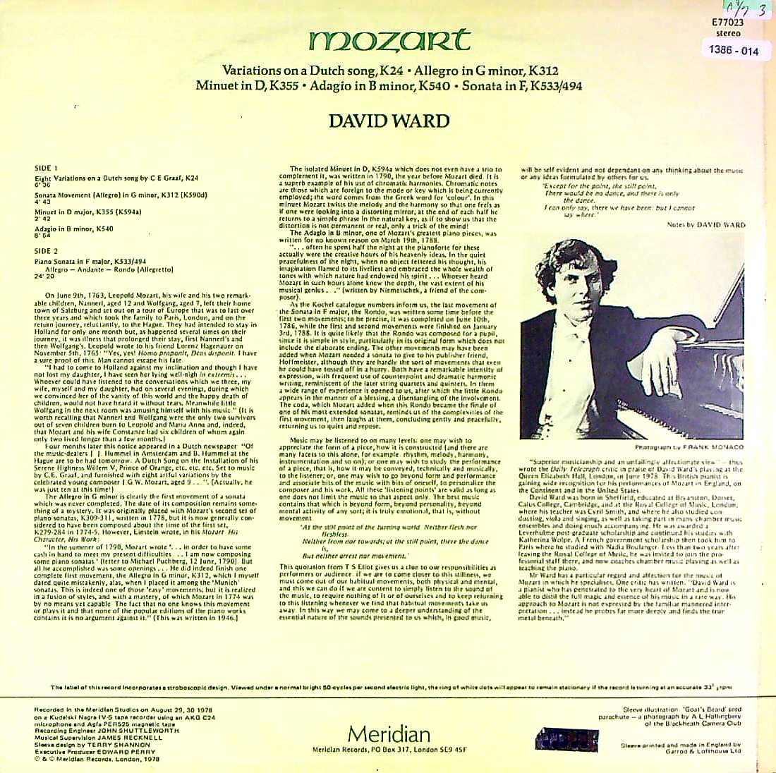 商品コード:1386-014p[MERIDIAN] D.ウォード(pf) / モーツァルト:8つの変奏曲K.24, アレグロK.312, メヌエットK.355 他