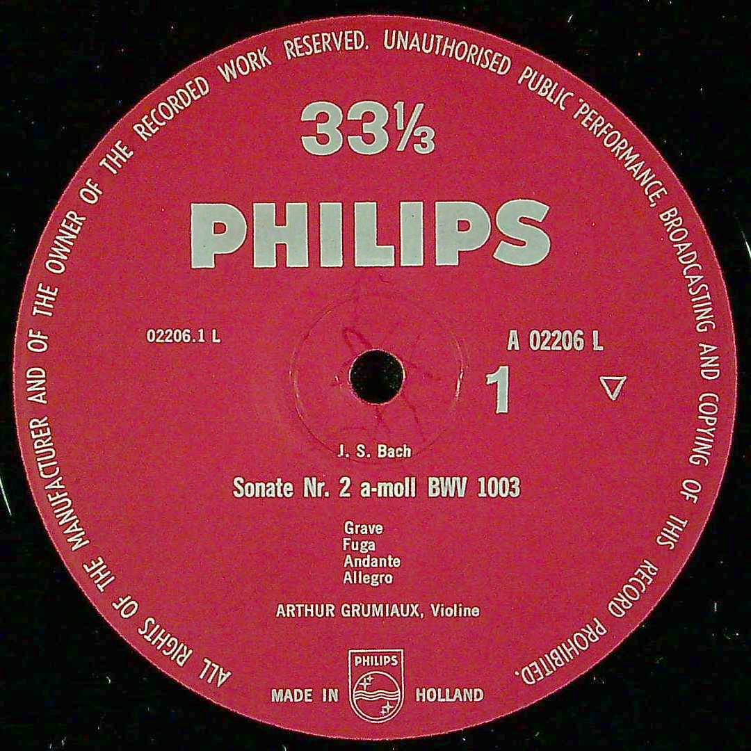 商品コード:1386-011[PHILIPS] A.グリュミオー(vn) / バッハ:無伴奏Vnソナタ2番BWV.1003, 無伴奏Vnパルティータ2番BWV.1004
