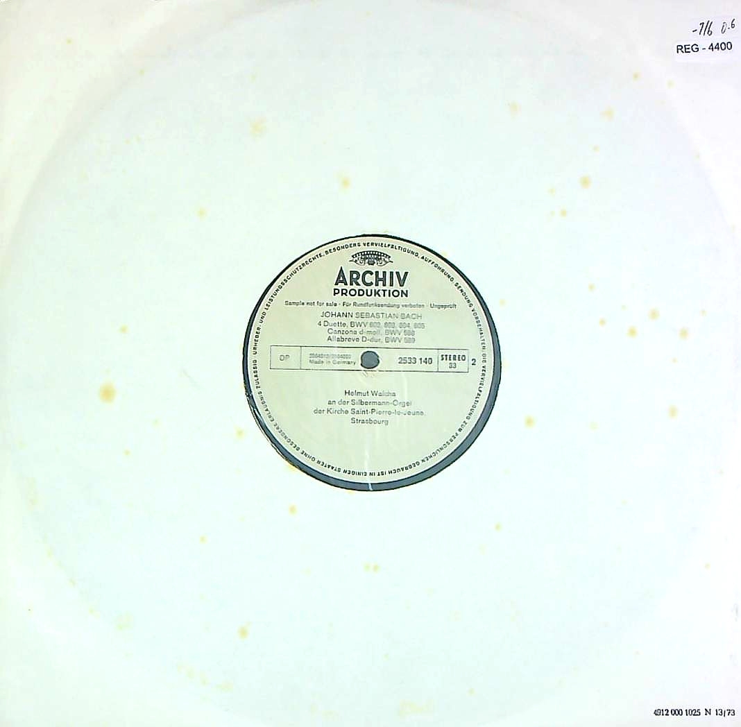 商品コード:REG-4400[独ARCHIV] H.ヴァルヒャ(org) / バッハ:トリオ・ソナタ1番, 6番(B.525/530), 4つのデュエットB.802-805, カンツォーナ B.588, アッラ・ブレーヴェB.589