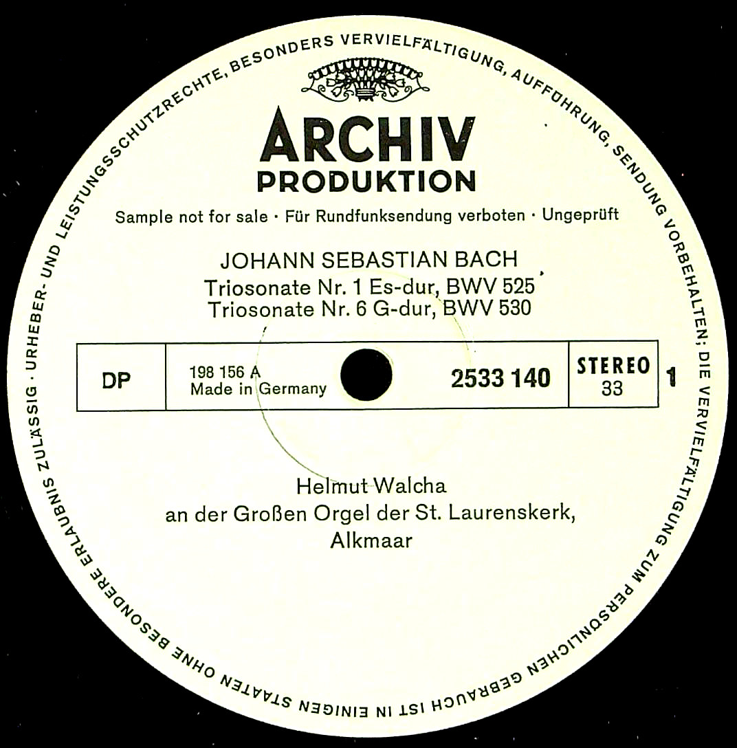 トピックス:白/黒サンプル, 両穴内袋(ジャケ元々存在せず), ストラスブールのサン・ピエール・ル・ジュヌ教会での録音, 198 156 SAPMが初出だがカップリング異なる, サンプル・プレス, 両面盤, 初入荷