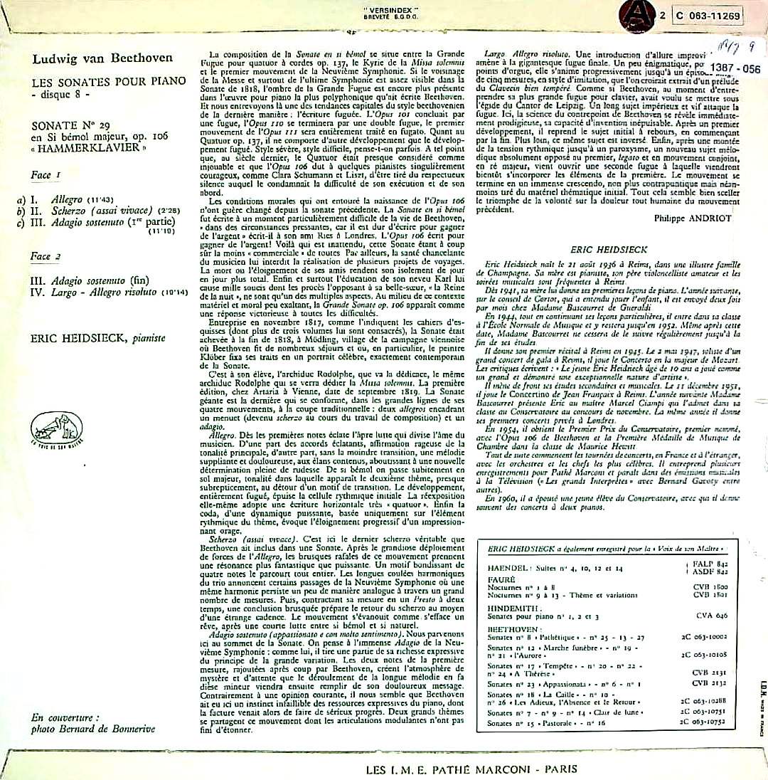 商品コード:1387-056[VSM] E.ハイドシェック(pf) / ベートーヴェン:Pfソナタ全集vol.8/ Pfソナタ29番Op.106「ハンマークラヴィア」