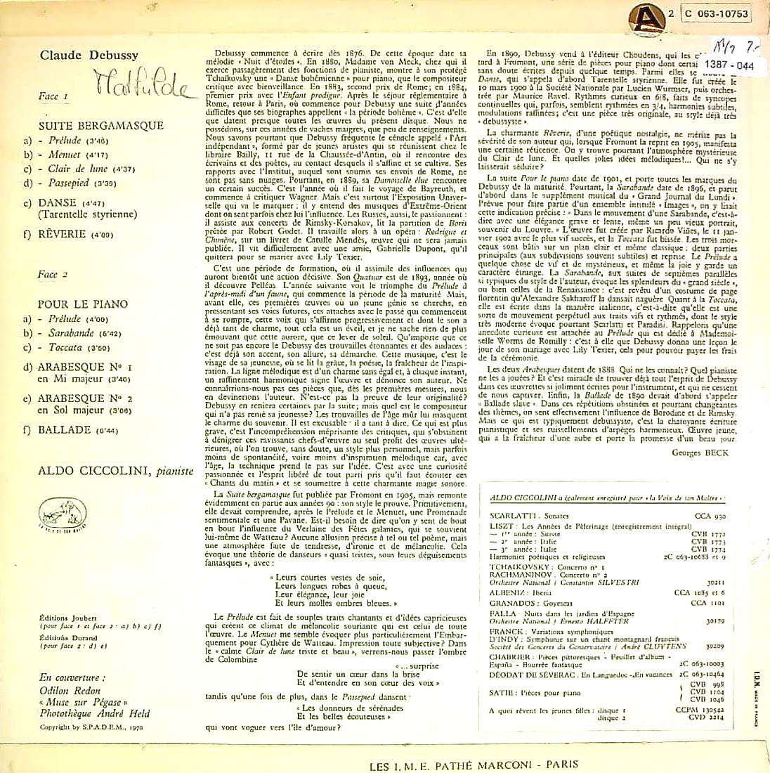 商品コード:1387-044[VSM] A.チッコリーニ(pf) / ドビュッシー:Pf作品集/ベルガマスク組曲, タランテラ, 夢想, ピアノのために, アラベスク1&2番, スラヴ風バラード