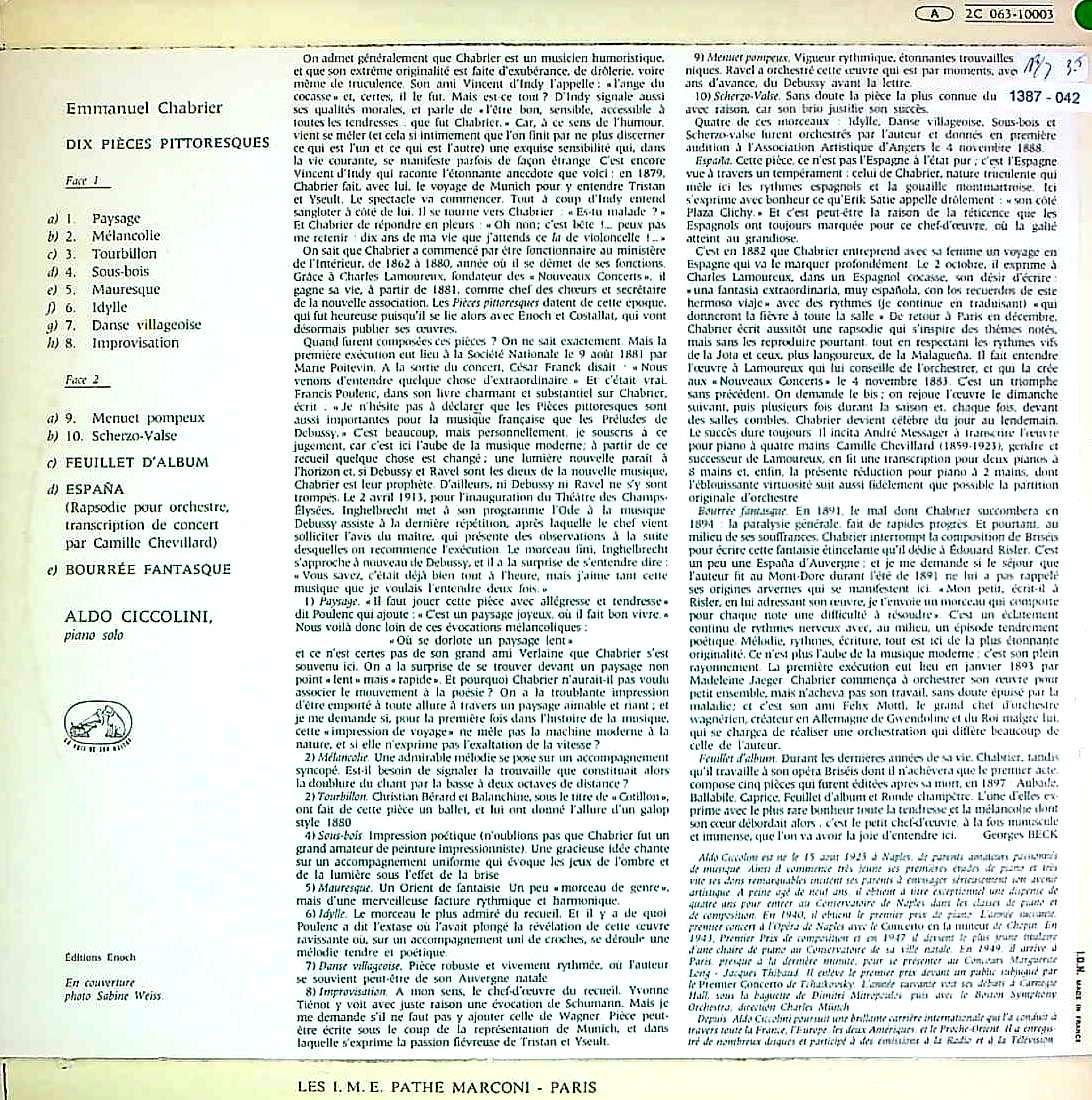 商品コード:1387-042[VSM] A.チッコリーニ(pf) / シャブリエ:Pf曲集/10の絵画風小品, アルバムの綴り, スペイン狂詩曲, 気まぐれなブーレ