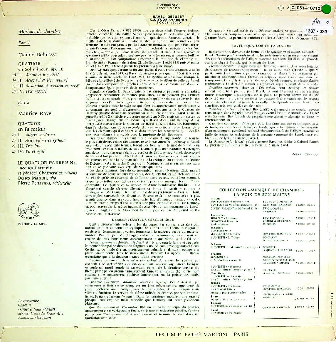 商品コード:1387-033[VSM] パルナンQt./ ドビュッシー:弦楽四重奏曲 Op.10, ラヴェル:弦楽四重奏曲