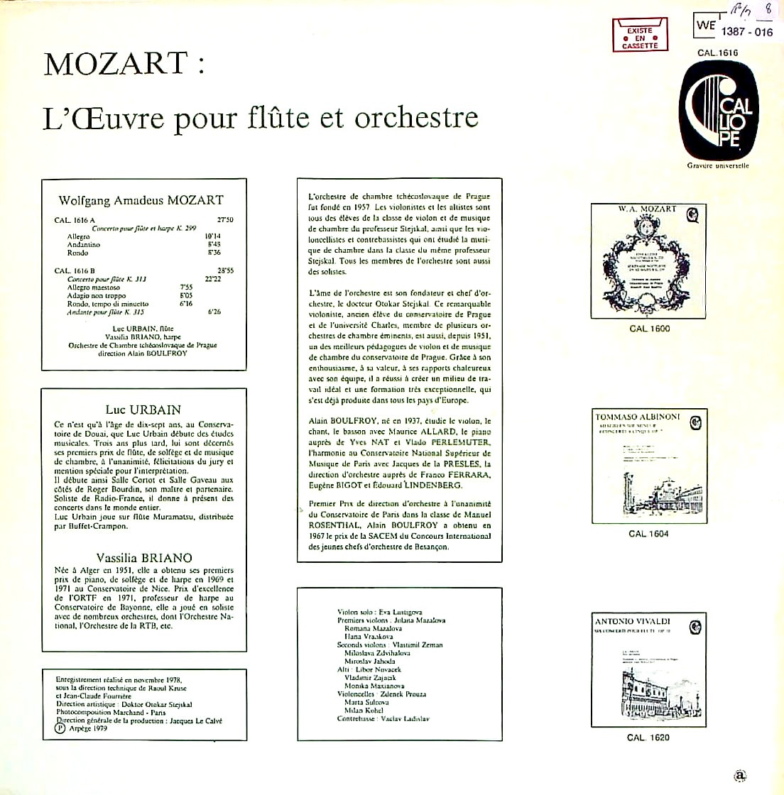 商品コード:1387-016[CALLIOPE] L.ユルバン(fl) V.ブリアーノ(hp)/ モーツァルト:Fl・Hp協奏曲K.299, Fl協奏曲1番K.313, アンダンテK.315
