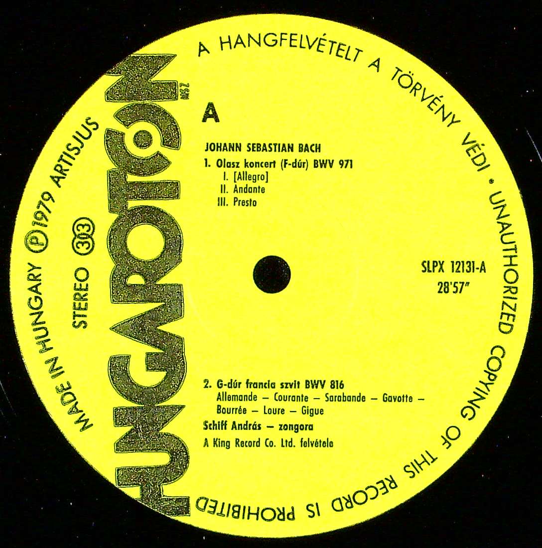 商品コード:1387-010n[HUNGAROTON] A.シフ(pf) / バッハ:イタリア協奏曲B.971, フランス組曲5番B.816, フランス風序曲B.831