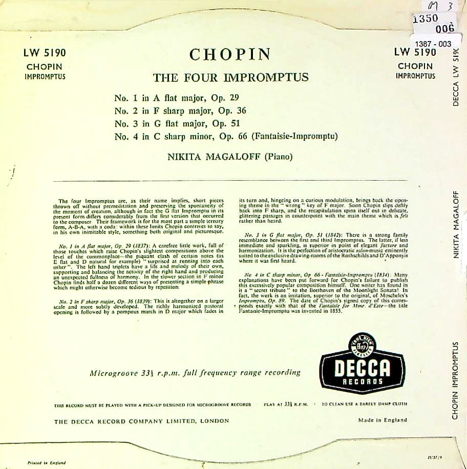 商品コード:1387-003[DECCA] N.マガロフ(pf) / ショパン:4つの即興曲集