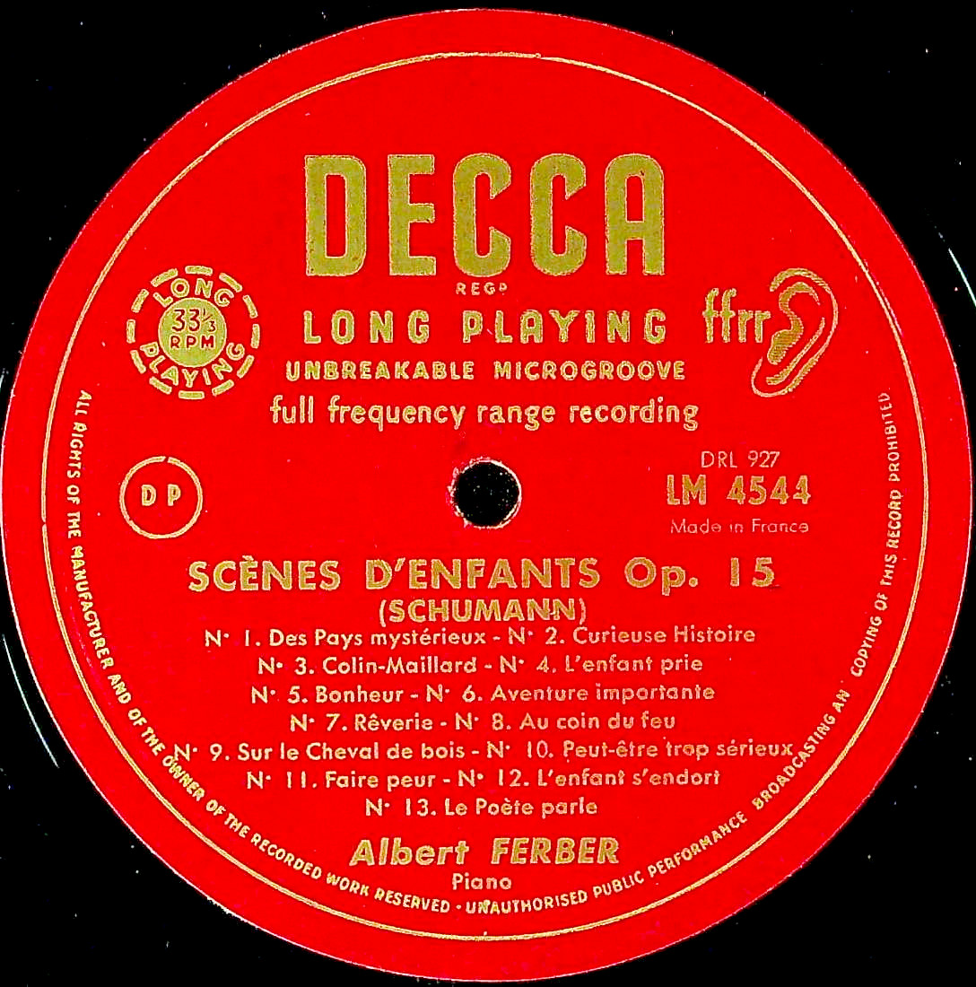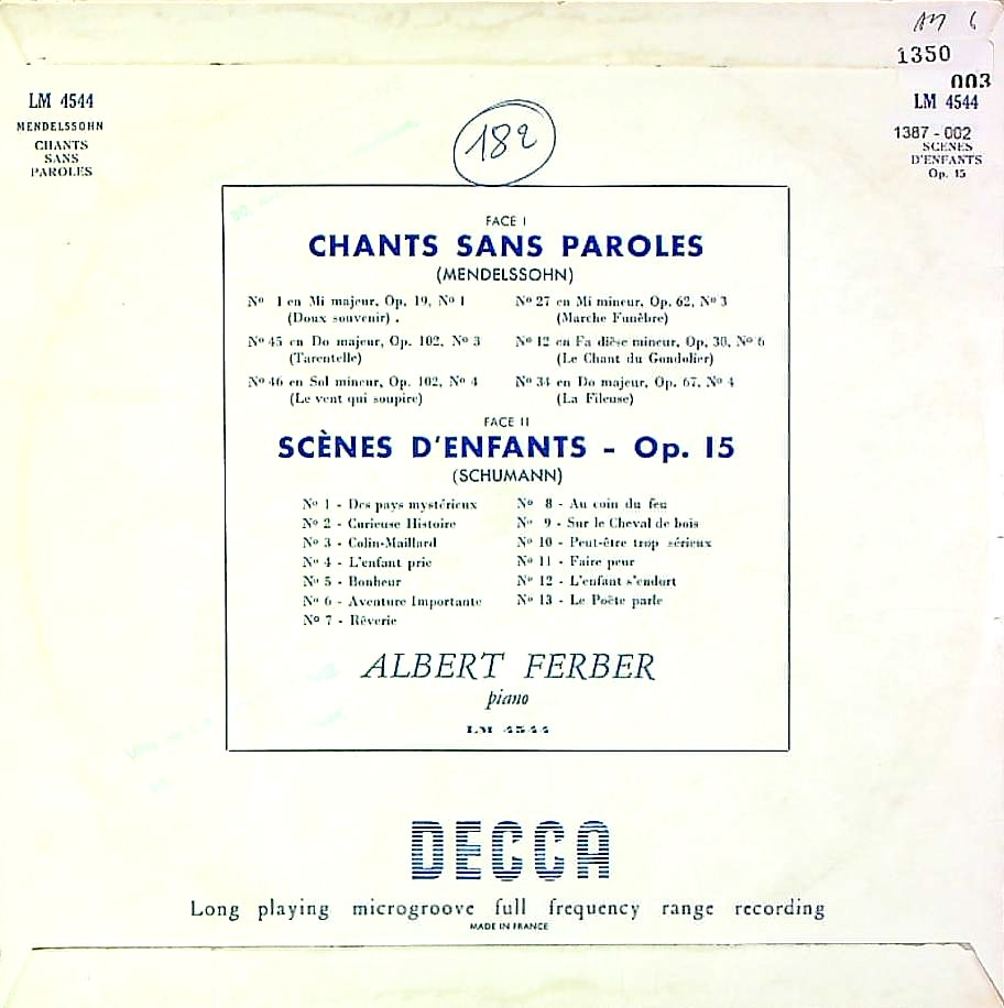 商品コード:1387-002[DECCA] A.フェルバー(pf) / メンデルスゾーン:無言歌集(抜粋6曲), シューマン:子供の情景Op.15(全13曲)