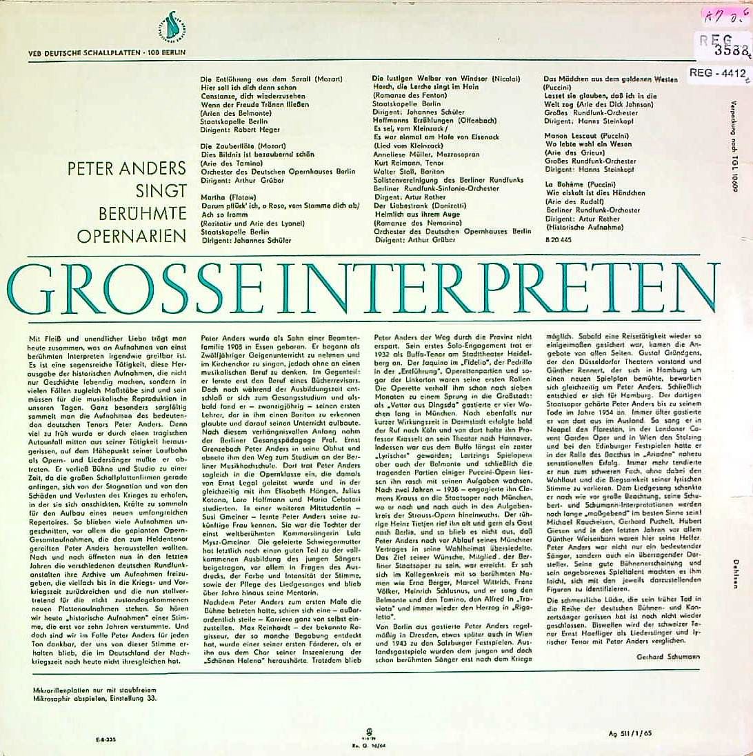 商品コード:REG-4412t[東独ETERNA] P.アンデルス(t)/ オペラ・アリア集/後宮, 魔笛, マルタ, ウィンザー, ホフマン物語, 愛の妙薬, 西部の娘 他