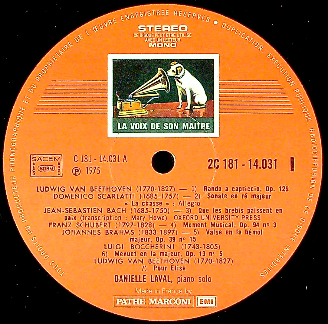 商品詳細:モーツァルトのPfソナタの録音が素晴らしかったD.ラヴァルが入れた小品集。'70年代の録音だが、数ある小品集の中でも出色の出来だと思う。2枚で34曲を上手く配置し、長い曲でも6分半という本当の小品集で、リサイタル盤とは発想が異なる。全25人の作曲家の写真付でPf曲のカタログとしても役立つ。近年彼女の良さが序々に浸透してきたがまだ充分とは言えない。'70年代では特別に優れた女性ピアニスト。自信を持って推薦するPf小品集。カラー切手オリジナルは少ない。1970年代の傑作ピアノLP!100%絶対に損のない2枚組!Danielle Laval (ダニエル・ラヴァル)はフランスの女性ピアニスト。3歳よりピアノを始め、5、6歳より本格的にピアノを学び始める。12歳のときエコールノルマル音楽院に入学し、クロード・デルヴァンクール、リュセット・デカーヴ、ジーン・バタラに師事。更にパリ国立高等音楽・舞踊学校に入学し、ピアノの研鑽を積む。ピエール・デルヴォー、アルミン・ジョルダン、アレクサンダー・ラザレフ、ローレンス・フォスター、アラン・ロンバール、パスカル・ヴェロなどの偉大な指揮者と共演を行った。ニーノ・ロータ(ピアノ協奏曲)、ミシェル・ルグランなどの近代作品の録音もある。ダニエル・ラヴァルは、2011年9月にブカレストで開催されたジョージ・エネスク・ピアノ・コンクールの審査委員長に任命された。競争の厳しいフランスの楽壇に於いてこれだけ多くの録音をEMI系のメジャーに残すラヴァルだが、情報があまりに少ないのが実情。実際に録音を聴いて何かを感じていただきたい。これはラヴァルの実力を知っていただくにはまたとない小品集。このような小品にピアニストの本質が表れる。
