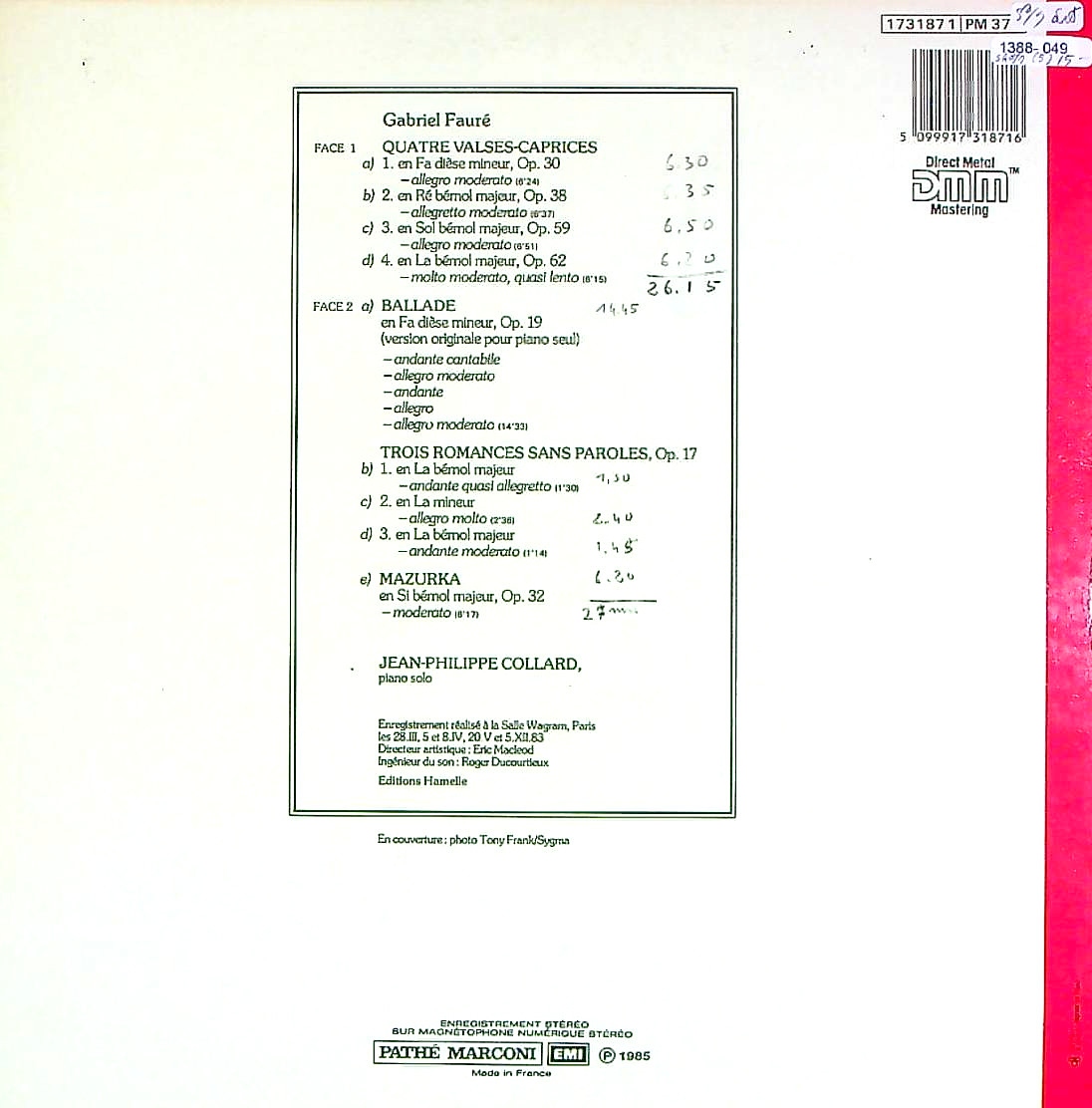 商品コード:1388-049[VSM] J.P.コラール(pf) / フォーレ:Pf作品全集(バラ5枚完結)/舟歌, 夜想曲, 即興曲, 前奏曲, ヴァルス・カプリス, バラード, 無言歌, マズルカ