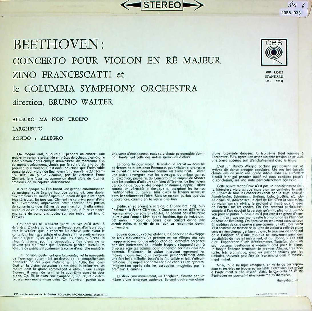商品コード:1388-033[CBS] Z.フランチェスカッティ(vn)/ ベートーヴェン:Vn協奏曲Op.61