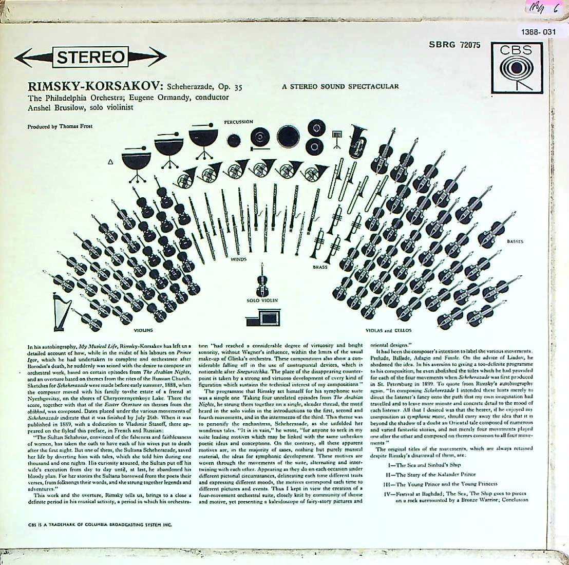 商品コード:1388-031t[CBS] E.オーマンディ指揮 A.ブルシーロフ(vn) / リムスキー・コルサコフ:交響組曲「シェヘラザード」