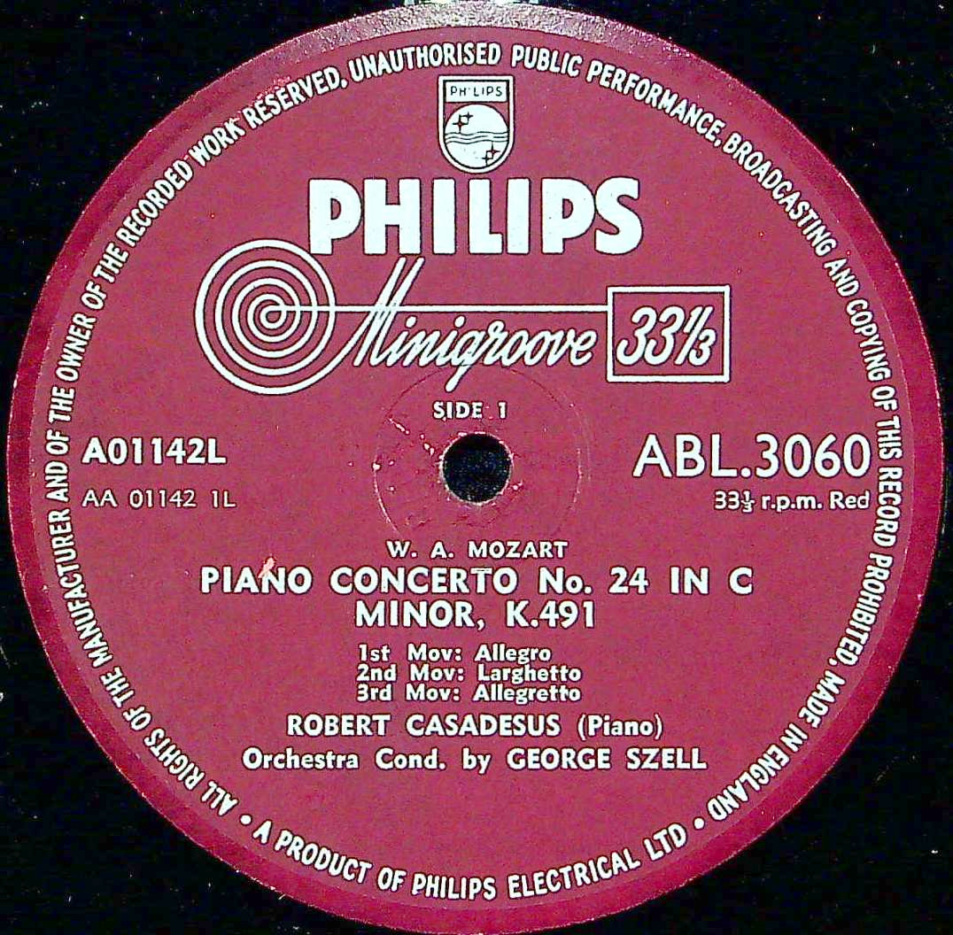 商品コード:1388-014pc[PHILIPS] R.カサドシュ(pf)/ モーツァルト:Pf協奏曲24番K.491, 26番K.537「戴冠式」