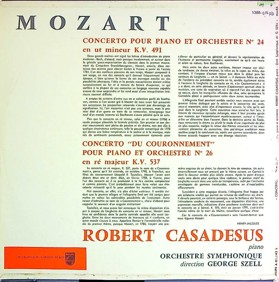 商品コード:1388-014pb[PHILIPS] R.カサドシュ(pf)/ モーツァルト:Pf協奏曲24番K.491, 26番K.537「戴冠式」