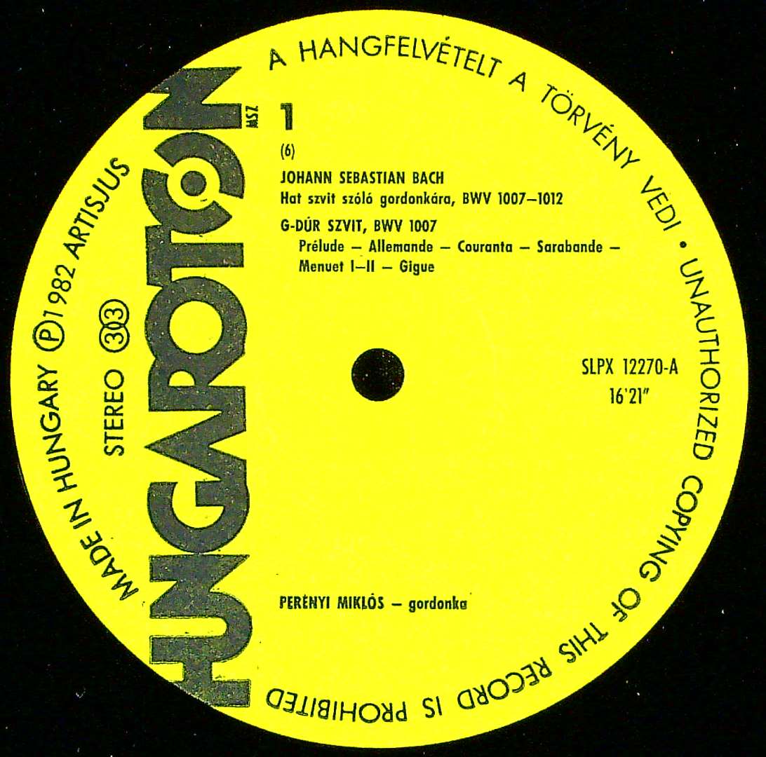 商品コード:1388-007n[HUNGAROTON] M.ペレーニ(vc) / バッハ:6つの無伴奏Vc組曲BWV.1007~1012