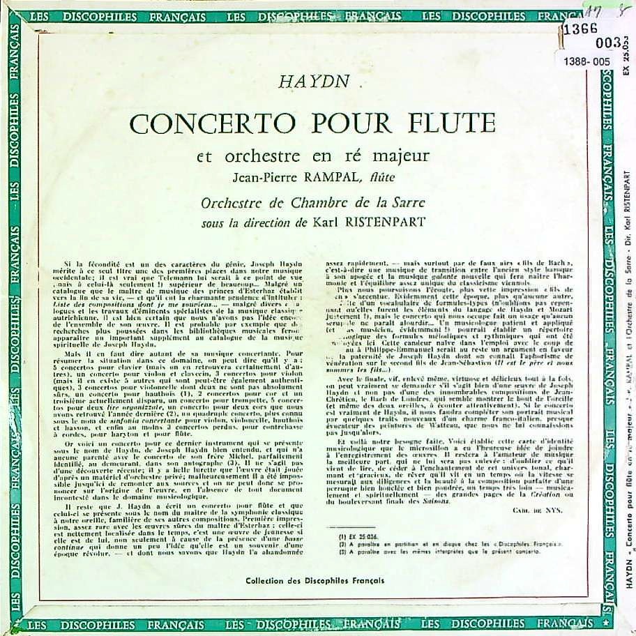 商品コード:1388-005p[DF] J.P.ランパル(fl) K.リステンパルト/ ハイドン:Fl協奏曲Hob.VIIf:D1