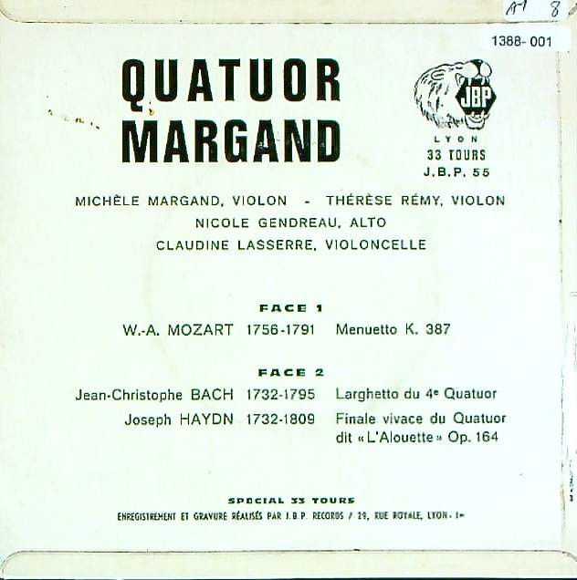 商品コード:1388-001[JBP] マルガンQt. / モーツァルト:弦楽四重奏曲14番K.387~メヌエット, J.C.バッハ, ハイドン