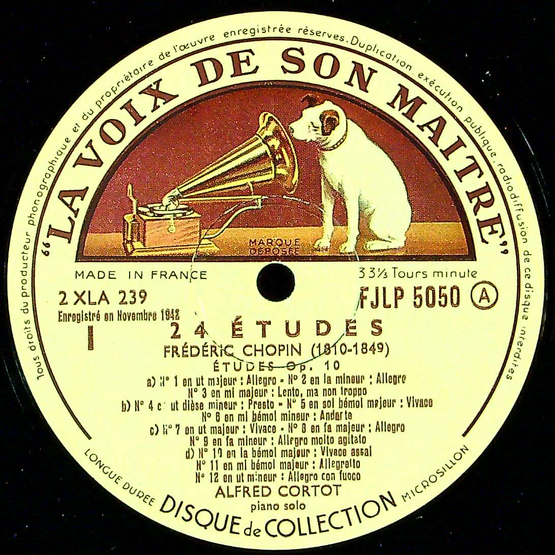 商品詳細:コルトーは実に4回のショパン:24の練習曲を録音している。順番にみると1926年SP録音→1933年SP録音(COLH 39)→1942年7月2日(SP録音)→1957年10月24日(モノラル録音)があることが解かっている。壮年期から晩年に至るまでに計4種のスタジオ録音が存在する。また955年のミュンヘンでのライブ録音もある。これは3回目となる1942年SP音源の復刻LPである。但し日本では東芝GR盤(COLH 39と同じ)が普及したこともあり、1933年の2回目録音が最も知られている。この1933年録音は何度も再版を繰り返し、CDでも発売されているので、日本でコルトーのショパン:練習曲を探すと、その1933年2回目録音しか入手できない事が多いと思われる。ただしコルトーの名声を世界的なものにしたのは初回の1926年録音であることは言うまでもない。日本ではあまり知られていない1942年3回目録音はロンドンではなくパリで録音されている。1942~43年の2年間にパリで多くの録音が行われた。24の前奏曲、14のワルツ、12の練習曲 Op.10、12の練習曲 Op.25である。一方1920-1930年代では圧倒的にロンドン録音が多い。全4種を聴き比べていないので何とも言えないが、同じSPでも1933年より1942年の方が音質は良い。1942年時点で65歳であるが、そこ迄衰えはないと思われる。若い時代の方が良いことは確かだが音質も重要である。バランスを考えると1942年というのは悪くない選択といえる。プレスも1950年代と良い時期である。1957年録音は気になるもののLPは存在しないと思われる。コルトーの演奏はメカニックの点では全く前時代的ではあるが、音楽性、エンターテインメント性の点では全ての演奏とは別格としての魅力を持つ演奏であることは間違いのない事実である。