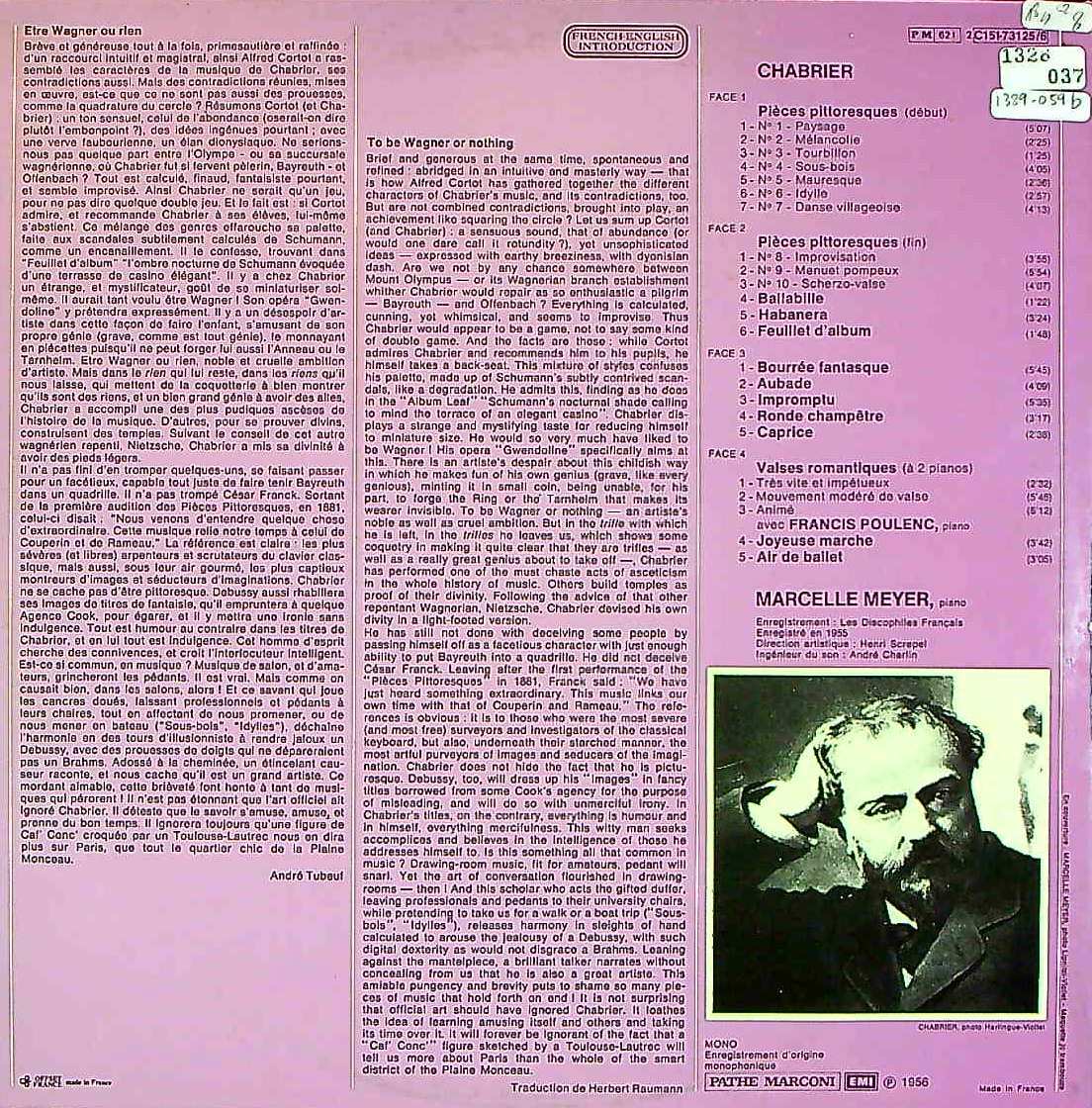 商品コード:1389-059b[VSM] M.メイエル, F.プーランク(pf) / シャブリエ:Pf作品集/10の絵画風小品, 遺作の5つの小品 他