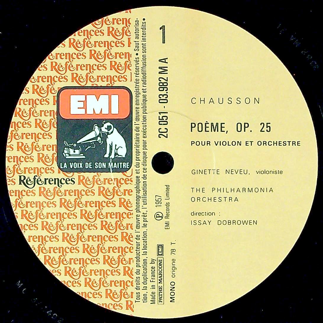 商品コード:1389-057b[VSM] G.ヌヴー(vn) J.ヌヴー(pf)/ ショーソン:詩曲Op.25, ドビュッシー:Vnソナタ, ラヴェル:ツィガーヌ