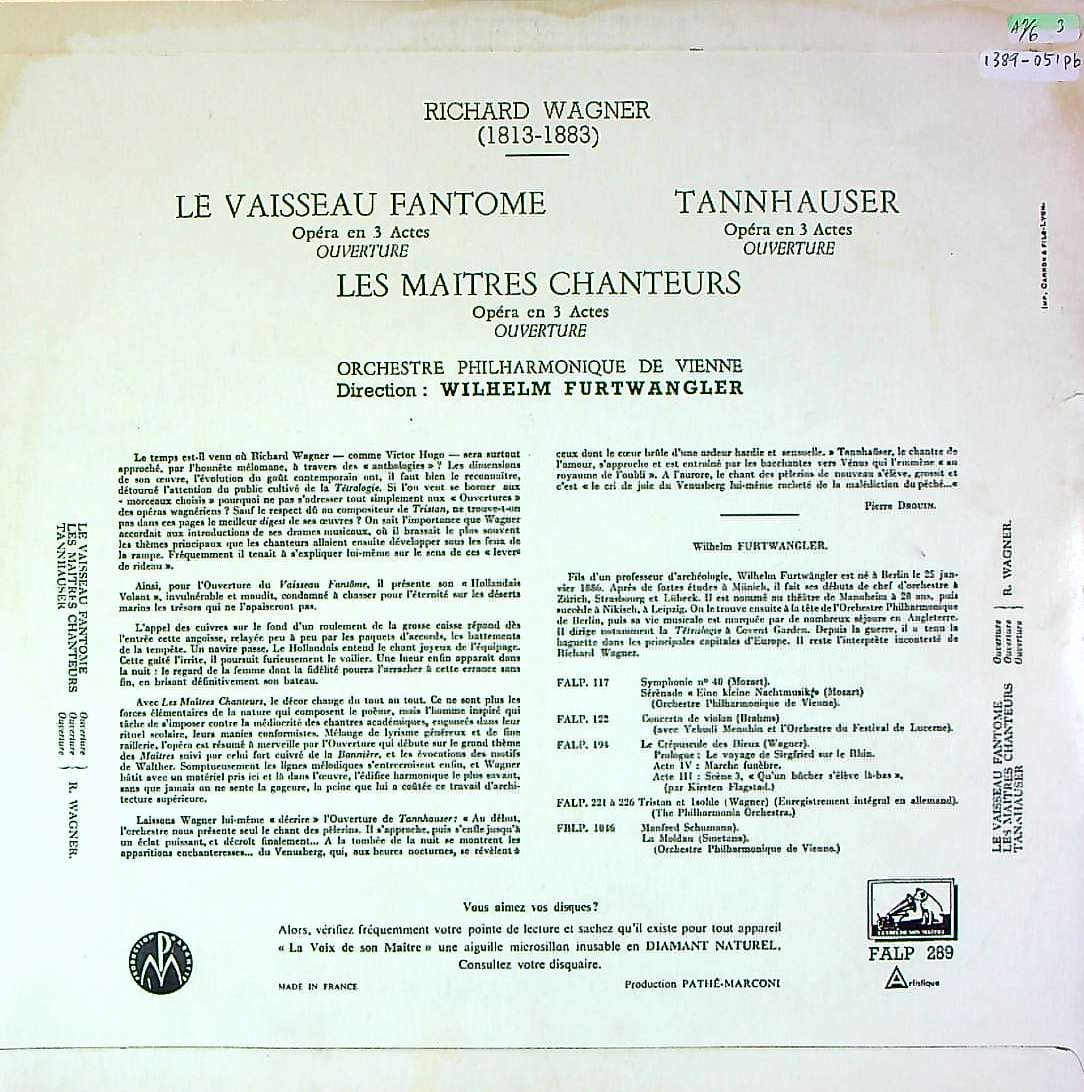 商品コード:1389-051pb[VSM] W.フルトヴェングラー/ ワーグナー:序曲集/オランダ人, マイスタージンガー, タンホイザー