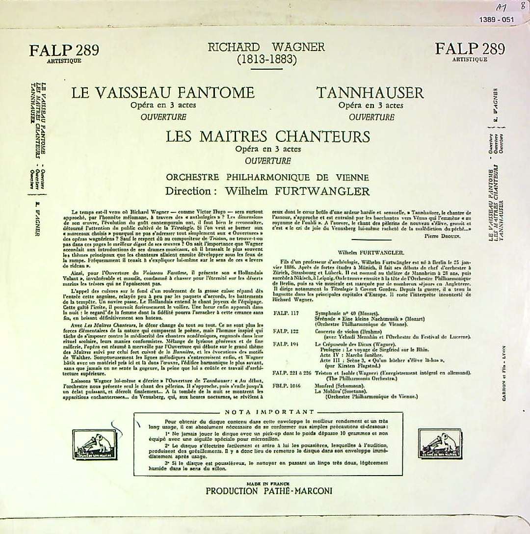 商品コード:1389-051[VSM] W.フルトヴェングラー/ ワーグナー:序曲集/オランダ人, マイスタージンガー, タンホイザー