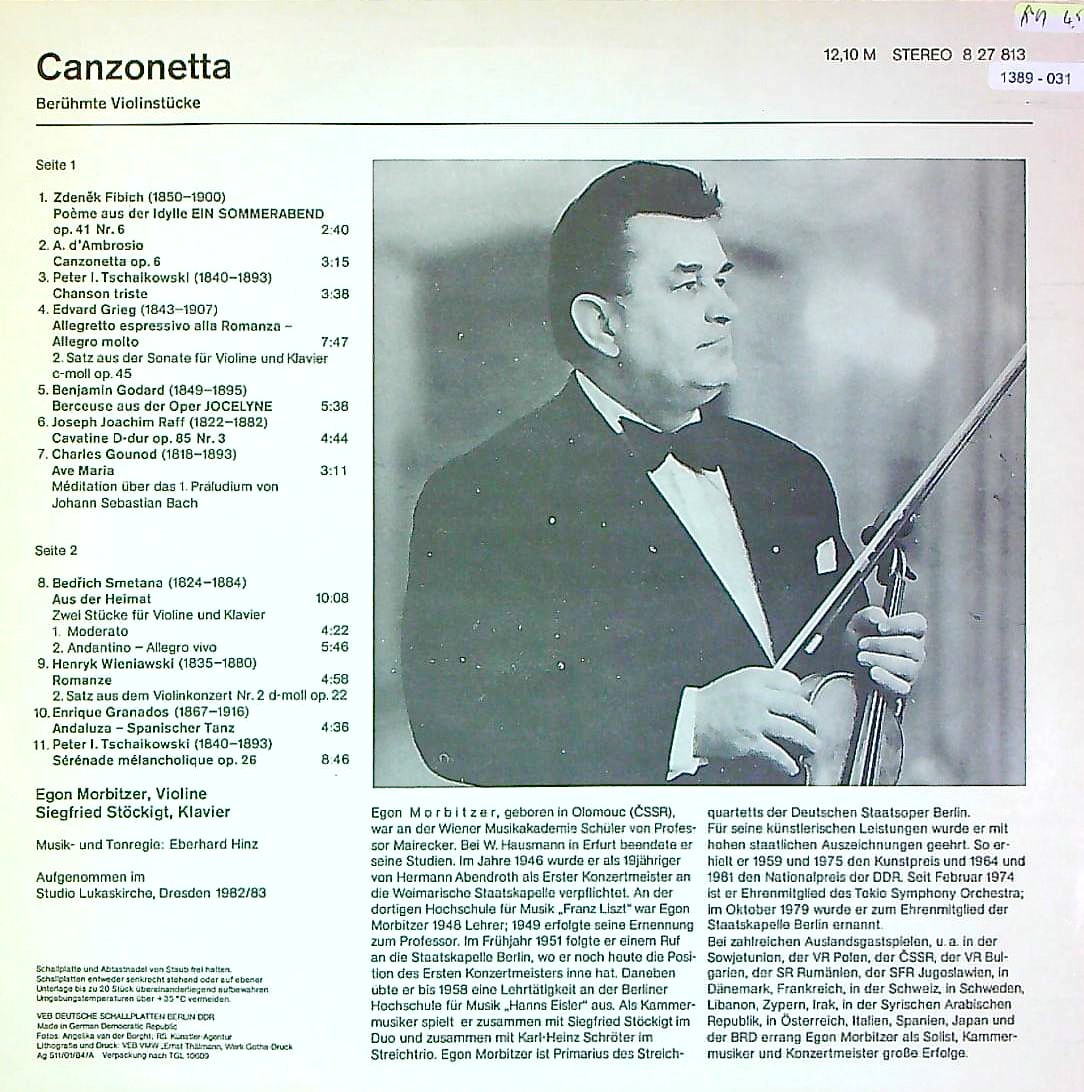 商品コード:1389-031n[ETERNA] E.モルビッツァー(vn)/ Vn小品集/フィビフ, チャイコフスキー, ゴダール, グノー 他