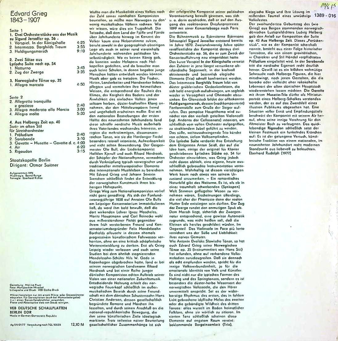 商品コード:1389-016n[ETERNA] O.スウィトナー/ グリーグ:十字軍の戦士シーグルOp. 56, 抒情組曲Op.54(抜粋2曲), ノルウェー舞曲Op.35, ホルベアの時代からOp.40