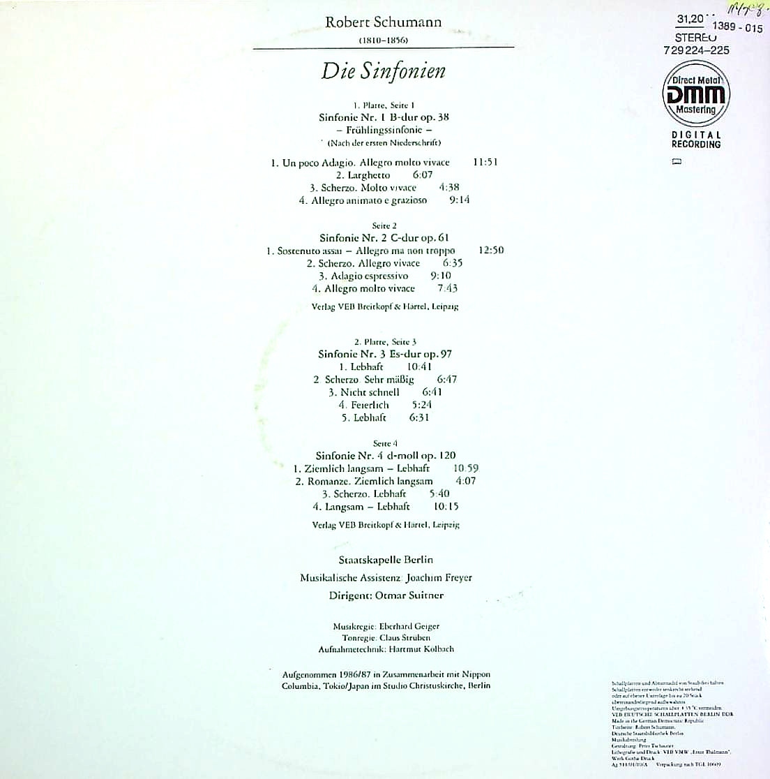 商品コード:1389-015n[ETERNA] O.スウィトナー/ シューマン:交響曲全集(全4曲)/1番Op.38「春」, 2番Op.61, 3番Op.97「ライン」, 4番Op.120