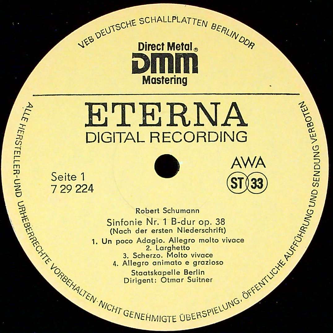 商品詳細:1986-7年日本コロムビアとの共同制作でのデジタル録音。DENONからも同時発売された。日本側がデジタル機材を持ち込み、ETERNA側がマイク・セッティングと録音を担当したと思われる。1番「春の交響曲」は1841年2月20日に完成した「自筆初稿」による唯一の演奏。デジタルでもスウィトナーの力は存分に出ている。モーツァルトの爽やかな演奏とはまた異なる、力のこもったコクのある響き。教会内の残響を多めにしたのはシュトリューベンの意図?個性的!ETERNA側では日本側が用意したマスターは使わず、独自にカッティングマスターを制作して、これまでと同様のプロセスでLPを制作した為、デジタル臭の全くない極めて自然なETERNAサウンドに仕上がっている。ETERNA側では日本が録音した音をそのまま市場に流すのは危険だと判断したようである。賢明な文化的判断であった。DENONのLPに聴くデジタル・サウンドは日本人が聴いても決して快いモノではなかった。日本とドイツ、何方も技術立国であるが、文化的には大きな違いがあった。いかなETERNAといえども1970年代のステレオ黒盤と全く同じ音とは言えない。しかしデジタル録音に踏み切った結果の仕上がりは大きく異なるものとなった。このシューマンにベートーヴェンやドヴォルザーク全集に見るような個性が感じられるか、正直100%素直にそうだと言い難い部分はある。しかしこれが最良のプレスである点は間違いない。結局、クラシック音楽の世界にデジタル録音方式を持ち込んだことは世紀の誤りだったことが理解されるだろう。音楽の命をそぎ落とし、窒息させることはメーカー側が痛いほど解っていたはずである。
