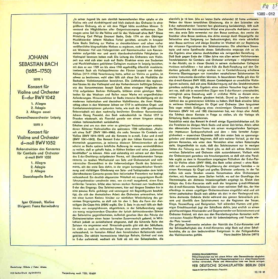 商品コード:1389-012n[ETERNA] I.オイストラフ(vn)/ バッハ:Vn協奏曲2番BWV.1042, Vn協奏曲ニ短調BWV.1052R