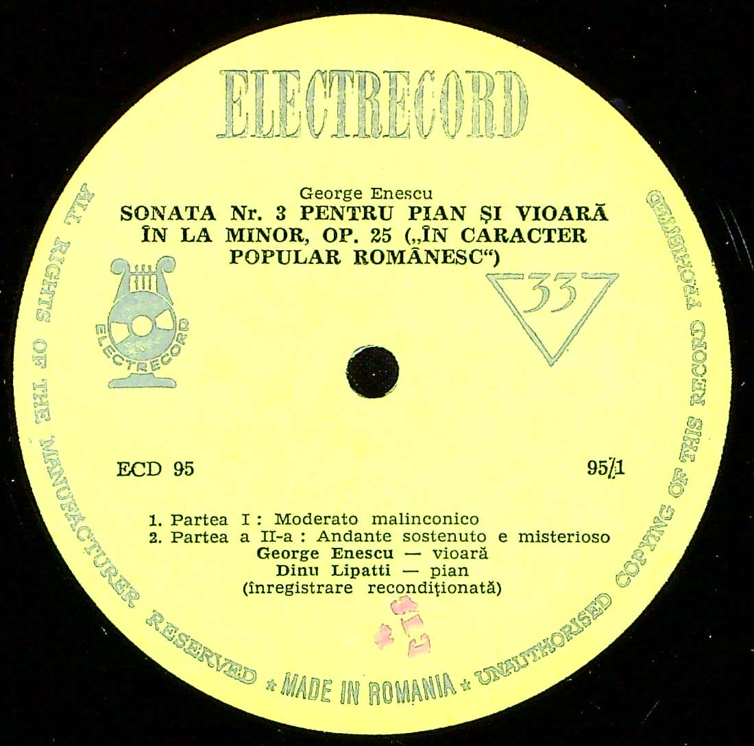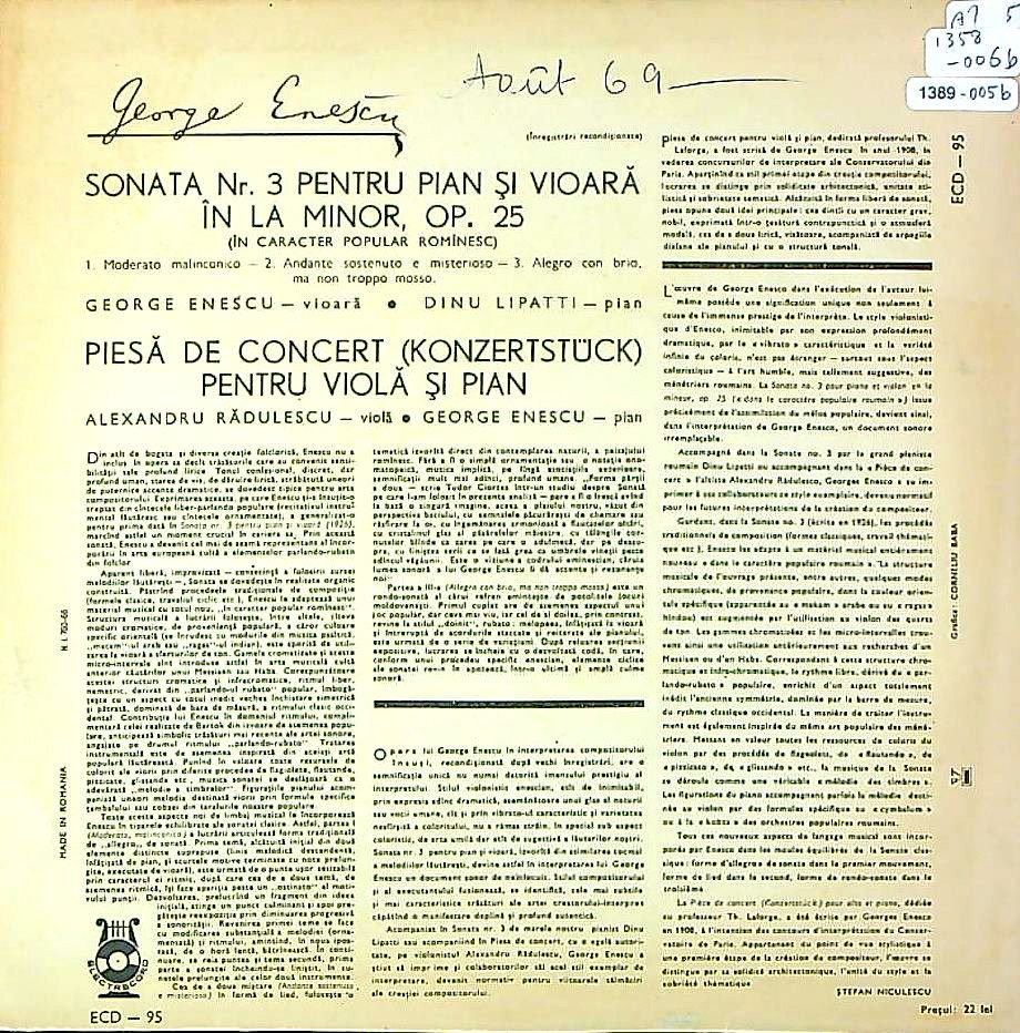商品コード:1389-005b[Electrecord] G.エネスク(vn)/A.ラドゥレスク(va)/ エネスク:Vnソナタ3番Op.25「ルーマニアの民俗風で」, 演奏会用小品