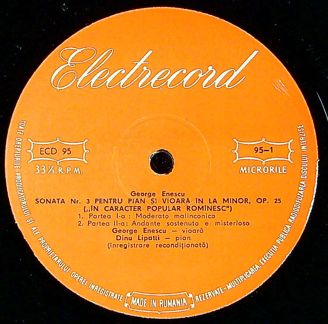 商品コード:1389-005[Electrecord] G.エネスク(vn)/A.ラドゥレスク(va)/ エネスク:Vnソナタ3番Op.25「ルーマニアの民俗風で」, 演奏会用小品