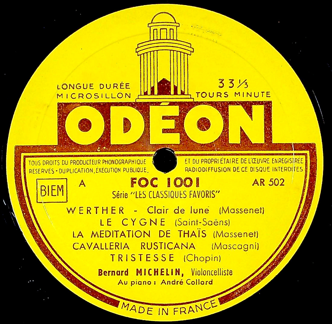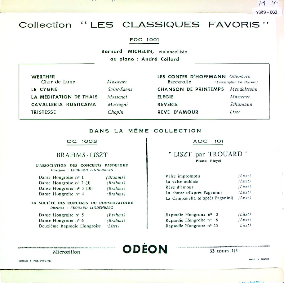 商品コード:1389-002[ODÉON] B.ミシュラン(vc)/ Vcリサイタル/マスネ, サン・サーンス, ショパン, シューマン, リスト 他