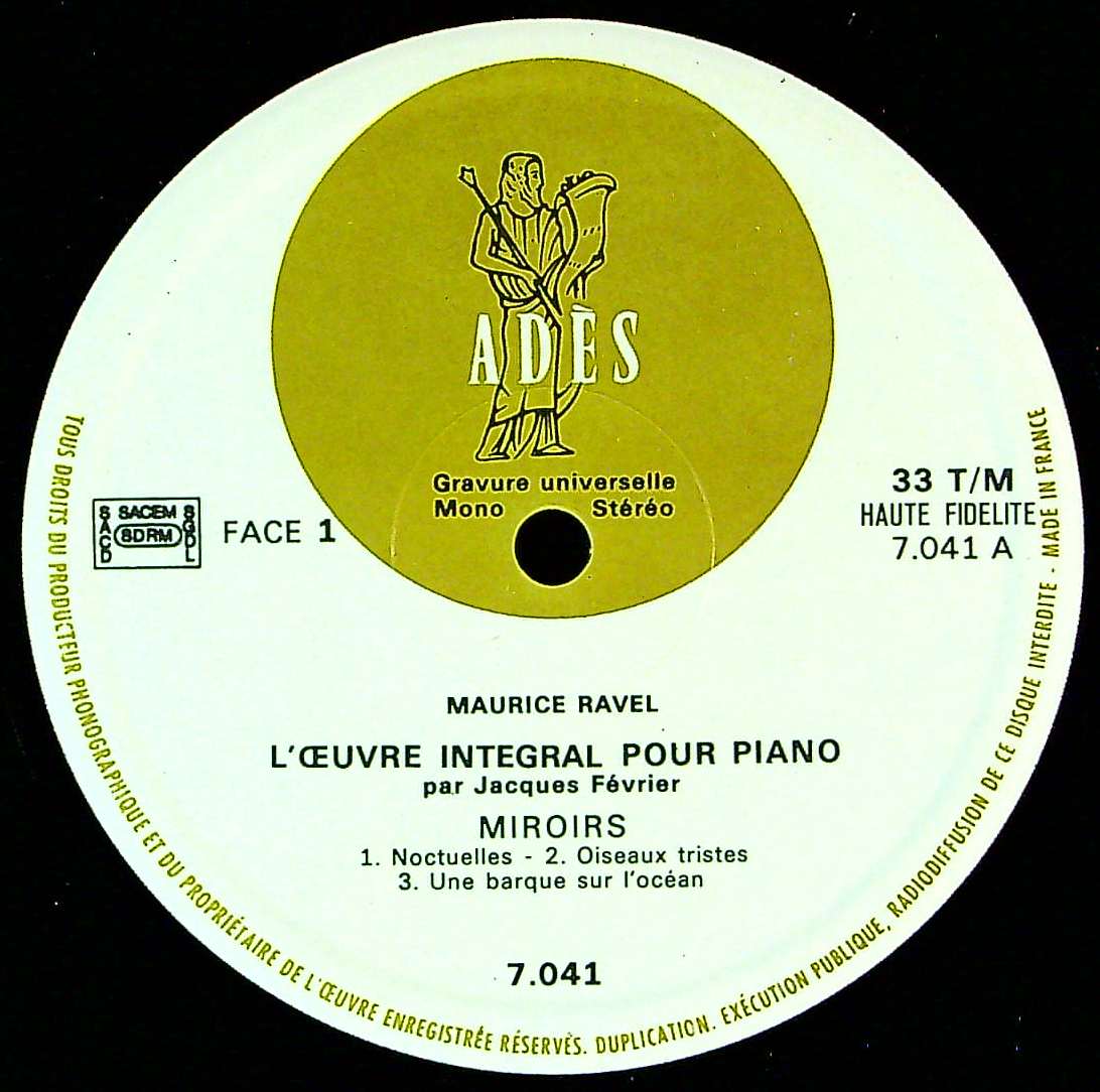 商品コード:1390-036[ADÈS] J.フェヴリエ(pf)/ ラヴェル:Pf曲全集(2Pf, 連弾含む)