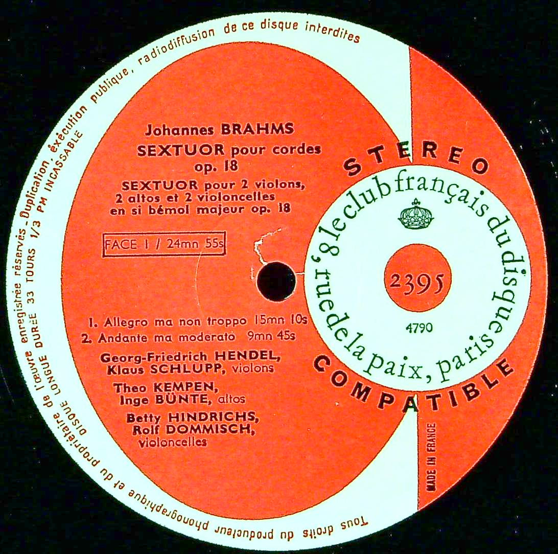 商品コード:1390-033[Club Français] サロワール六重奏団/ ブラームス:弦楽六重奏曲1番Op.18, 弦楽六重奏曲2番Op.36