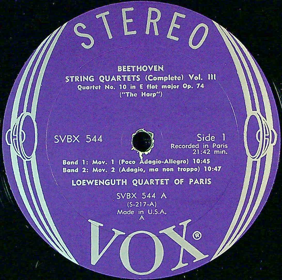 商品コード:1390-030[VOX] レーヴェングートQt./ ベートーヴェン:弦楽四重奏曲全集vol.3/10番Op.74「ハープ」, 12番Op.127, 13番Op.130, 16番Op.135