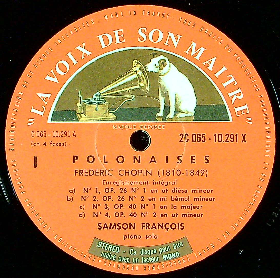 商品詳細:フランソワのポロネーズ集は2種ある。初回モノラル録音はFC 25028-9の10"バラ2枚(グレージャケ)。これは1968-1969年ステレオ2回目録音。彼はこの録音の約1年後に若くして亡くなった。録音の予定が入っていたが、完結する事なく終わった。酒を愛したムラ気の多い芸術家肌のピアニスト。日本ではもちろん、フランスでも大変愛されている。初回モノラルの少々の堅苦しさはこれにはなく、自由奔放。まさにフランソワ節が炸裂したポロネーズ。フランソワ自身を聴く感じ。1970年代に入り単売されるがカラー切手ニッパーで、SCニッパー段なし小STEREOのオリジナルは箱物しか存在しない。心臓発作が原因で亡くなったそうだが多くは薬かアルコール中毒であると考えている。彼はナイトクラブの常連であり、こよなくジャズ、酒、たばこを愛してやまなかった人生を送った。演奏は興に乗った時とそうでない時との差がかなりあったと伝えられる。それは、仕事の忙しさから空虚感を埋めるために通うナイトクラブのせいであるらしい。酒やたばこは結局彼の命を縮めることになってしまった。私生活も荒れたものだったらしい。自由を求め、芸術家魂を表現した数少ないピアニストとして今もって高い人気を誇る。故人には恐縮だが、フランソワほど、これらが似合う音楽家はいなかったと思う。多くのファンはそう感じているのではないだろうか。ドイツでは完全に無視され、ELECTROLAからただの1枚も発売されなかった。今では伝説のピアニストとなっている。白SCニッパーは初年度リリース分だけの希少レーベルで滅多になく高額である。カラー切手レーベルでも十分に音質が良い。価格はプレス年代で大きく変わる。