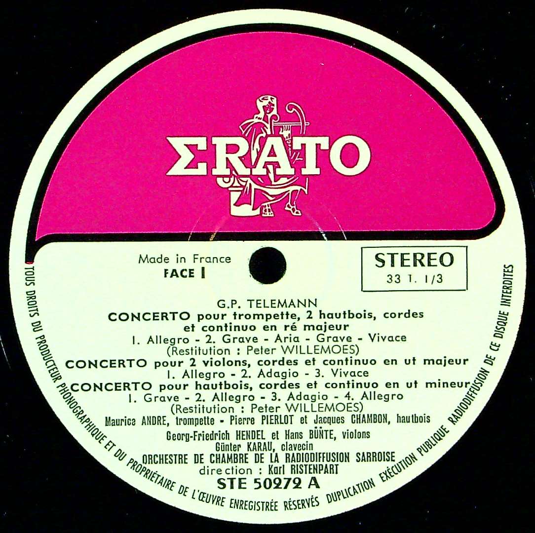 商品コード:REG-4453[仏ERATO] K.リステンパルト/ テレマン:協奏曲(3曲), Vc・Orchの協奏的組曲