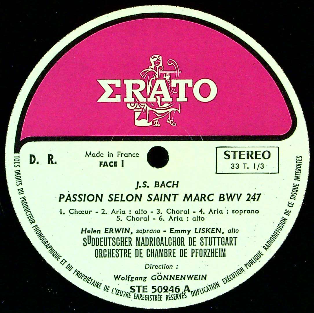 商品コード:REG-4450[仏ERATO] W.ゲネンヴァイン/ バッハ:マルコ受難曲B.247